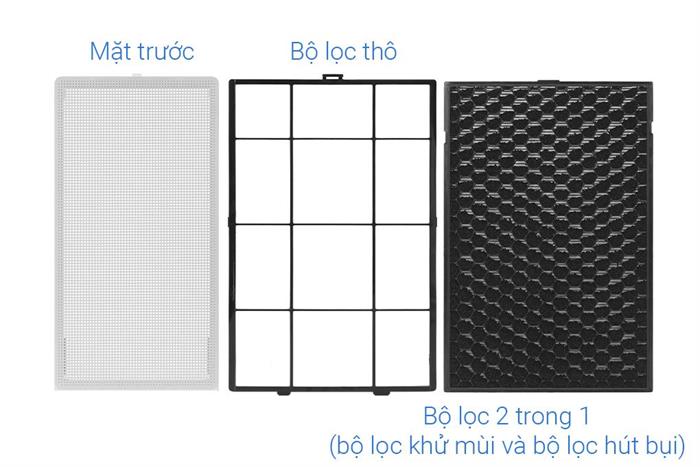 - Sự kết hợp của ba lớp lọc giúp máy loại bỏ nhiều loại ô nhiễm không khí khác nhau, từ bụi bẩn siêu mịn PM0.3, PM0.5,... đến các chất độc hại và mùi khó chịu, mang lại không gian sống an toàn và dễ chịu cho cả gia đình.