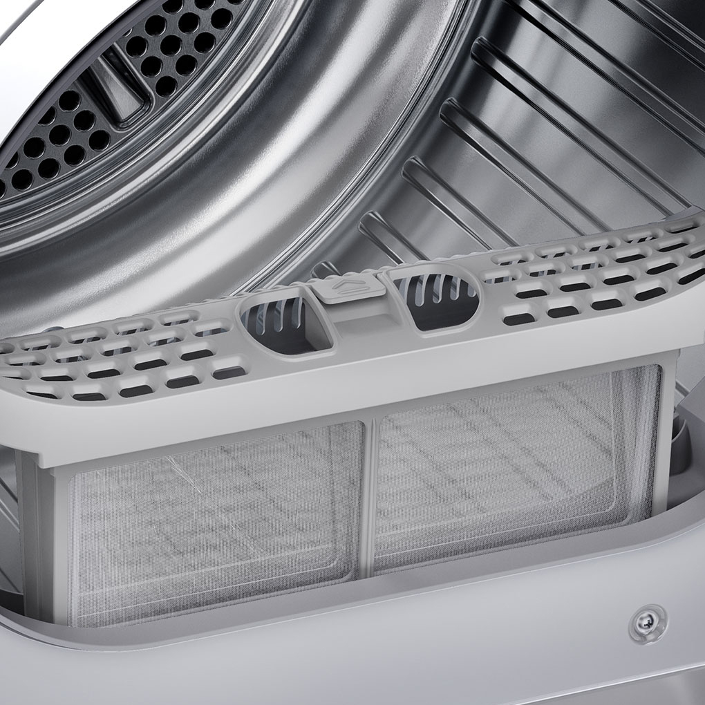 Bộ lọc xơ vải dạng lưới 2 lớp: Bộ lọc này sẽ giúp giữ lại những xơ vải, cặn bẩn sinh ra trong quá trình sấy. Với thiết kế tối ưu người dùng có thể vệ sinh bộ lọc này dễ dàng, góp phần giữ cho quần áo luôn sạch sẽ.