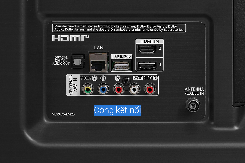 Ngoài ra, các cổng kết nối phổ biến khác như: USB (2 cổng), Composite, Component, Optical,... để kết nối với các thiết bị khác như: loa, đầu thu, USB,.. khi có nhu cầu ghép nối thiết bị.