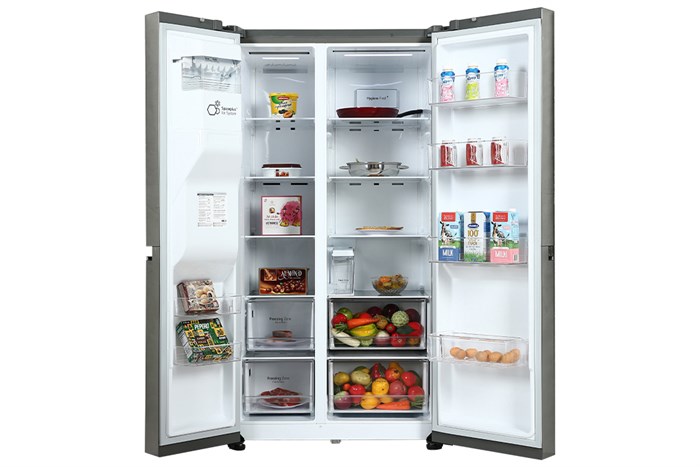 - Tủ lạnh LG Inverter 635 Lít GR-D257JS thuộc dòng tủ Side by side 4 cánh, cửa tủ làm bằng thép không gỉ bền bỉ, chắc chắn.